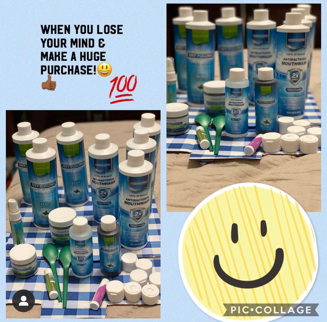 *Each set of antibacterial mouthwash and activated charcoal toothpaste powder has the option to add organic neem powder and organic peppermint powder to the tooth powder.