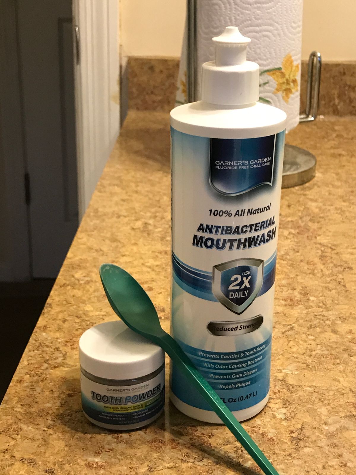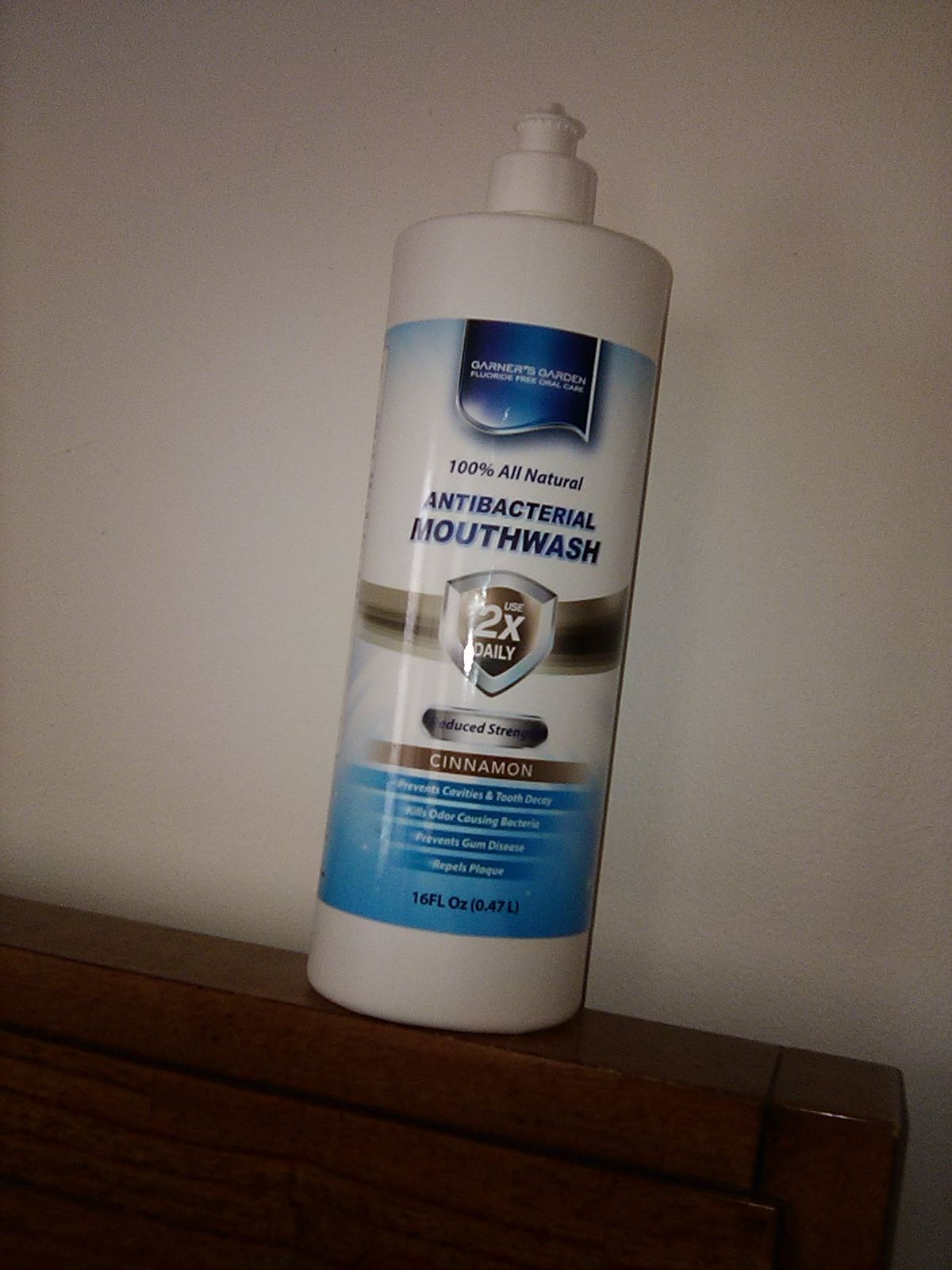 Reduced strength is half the strength of the regular strength version. Garner’s Garden all-natural mouthwash is made with 3% or 1.5% Food Grade H2O2 which helps prevent multiple oral issues. Our natural mouthwash works even on sensitive teeth! It is not only antibacterial, but it is also antiviral, anti-fungal, and it whitens teeth naturally.