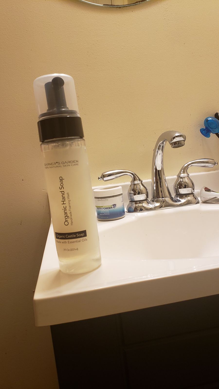 Ingredients: Aqua (Water), Potassium Oleate, Potassium Cocoate, Glycerin, Potassium Citrate, Potassium Palm Kernelate, Palm Kernal Acid, Hamamelis Virginiana (Witch Hazel) Distillate, Aloe Barbadensis Leaf Juice, Melaleuca Alternifolia (Tea Tree) Leaf Oil, Eucalyptus Globulus Leaf Oil, Lavandula Angustifolia (Lavender) Oil, Mentha Piperita (Peppermint) Oil, Cymbopogon Martini (Palmarosa) Oil