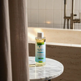 While your skin is damp, apply Breathe Better Body Oil, and enjoy the soothing, fragrant, energizing, and herbal aroma of premium-grade eucalyptus oil.