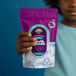 The Advanced Organic Kid's Tooth Powder detoxifies with activated charcoal, polishes teeth with clays, and supports gum health with neem and peppermint.