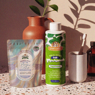 Give your child the best start to oral health with Garner's Garden Kid's Mouthwash and Tooth Powder Package. This natural set promotes strong teeth, fresh breath, and healthy gums while protecting against cavities and bacteria.