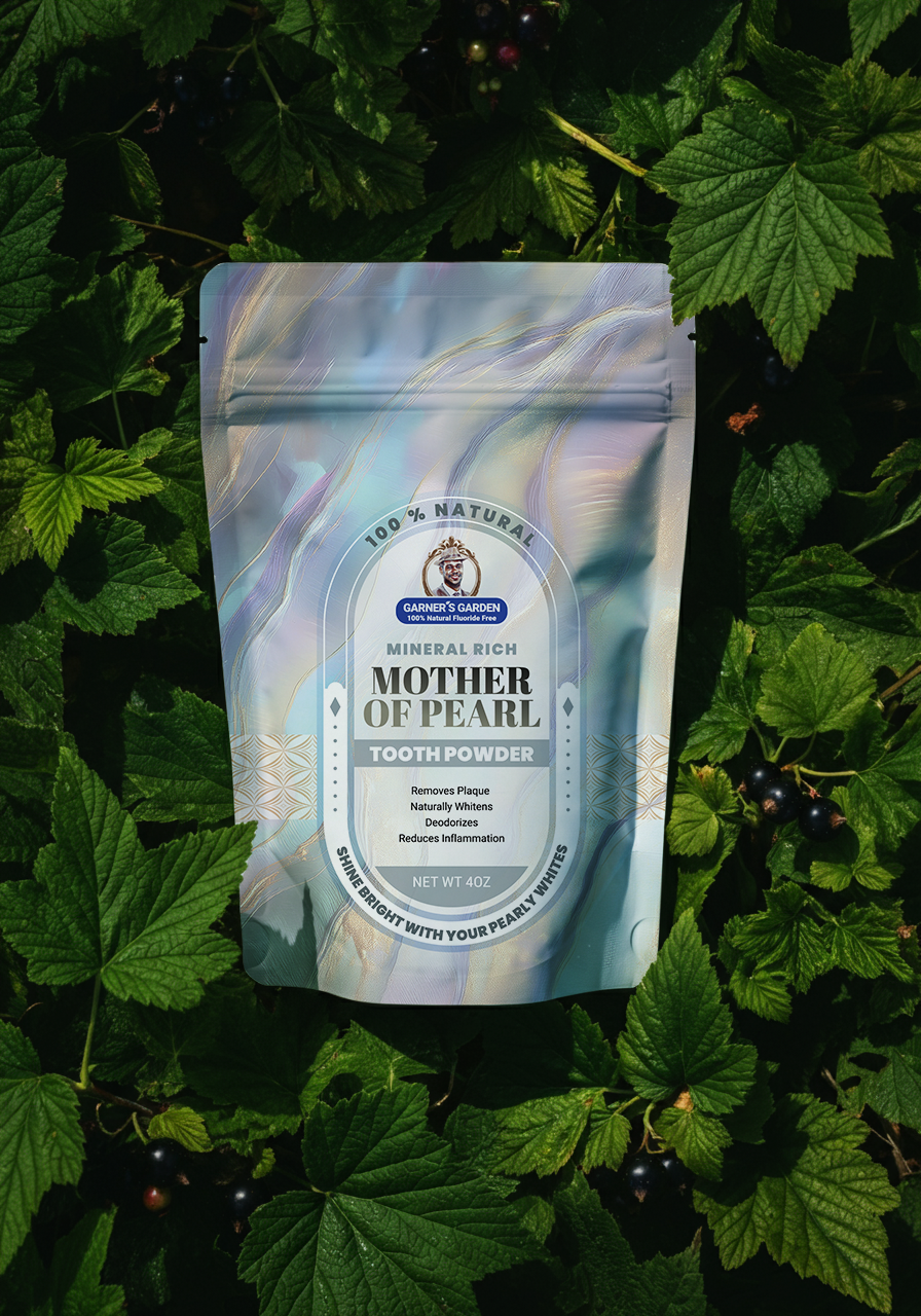 Give your gums the care they deserve with Garner’s Garden Mother of Pearl Tooth Powder.